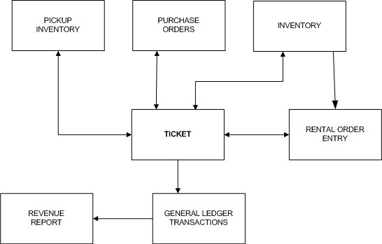 The customer's sales ticket becomes the center point for many other files within the ProfitSystem system. Often, a user can simply go to a customer's ticket and see exactly the status of each item sold. See the following illustration for more insight.